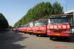 2008年5月30日,我公司選派3公司10臺豪沃8X4自卸車,承擔(dān)了太鋼支援甘肅地震災(zāi)區(qū)700頂帳篷等物資的緊急運(yùn)送任務(wù)。