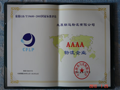 2010年1月22日,我公司榮獲中國(guó)物流與采購(gòu)聯(lián)合會(huì)審定的“AAAA級(jí)綜合服務(wù)型物流企業(yè)”資質(zhì)。