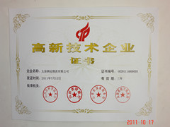 2011年7月12日,經(jīng)山西省科技廳、省財(cái)政廳、省國(guó)稅局、省地稅局組成的山西省高新技術(shù)企業(yè)認(rèn)定管理機(jī)構(gòu)批準(zhǔn),我公司被認(rèn)定為高新技術(shù)企業(yè)。