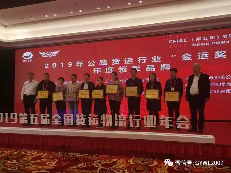 公司榮獲2019年公路貨運行業(yè)“金運獎”年度領軍品牌榮譽